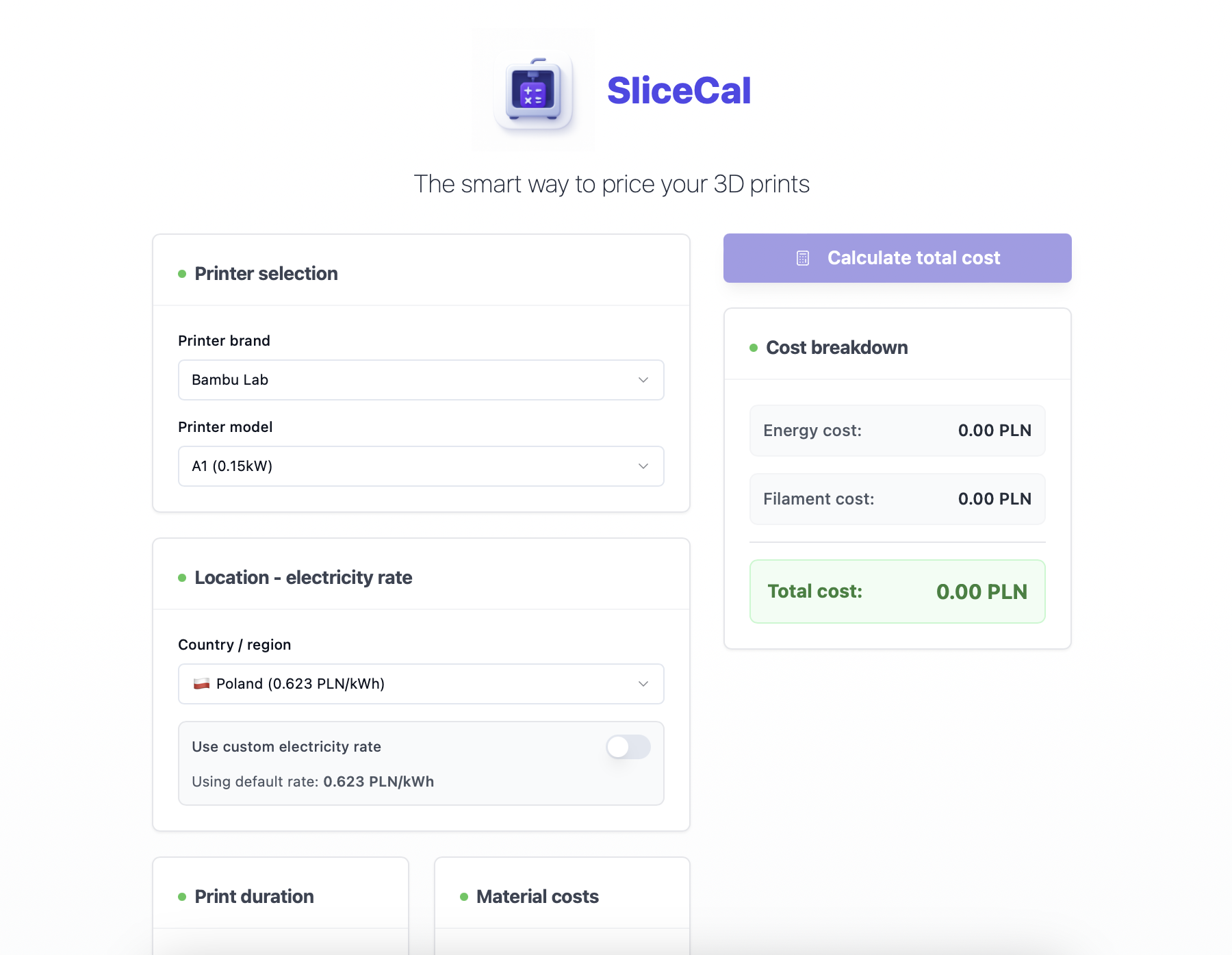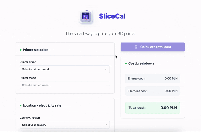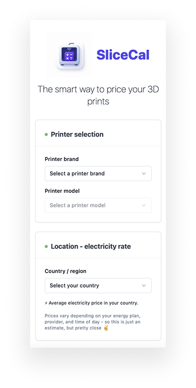 As a 3D printing enthusiast, I often struggled with quickly estimating how much a print would actually cost me (out of pure curiosity, friends often asked me the same question about the real cost of a print). Existing calculators felt either too complex or too limited.